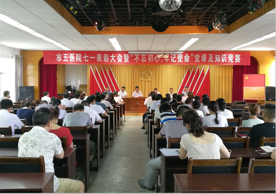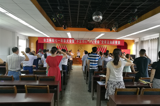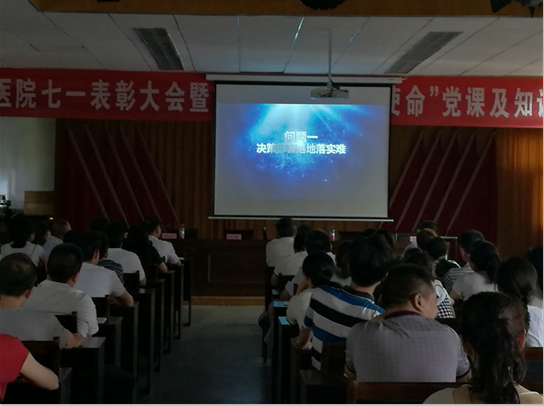 “七一”表彰大会后,院党委书记姚强为全体党员上了一堂题为《不忘初心、牢记使命——深刻认识坚持和加强党的全面领导》的生动党课。他从实现中华民族伟大复兴的根本保证、坚持和加强党的全面领导具有丰富内涵、坚定不移推进全面从严治党三个方面阐述了在新时代深入推进党的建设新的伟大工程,必须深刻认识、牢牢把握坚持和加强党的全面领导这一根本要求。并结合医院实际,教导全体党员干部要“不忘初心、牢记使命”,把党的全面领导贯彻到实际工作中,统一思想、步调一致,推进五医院发展的新局面。
